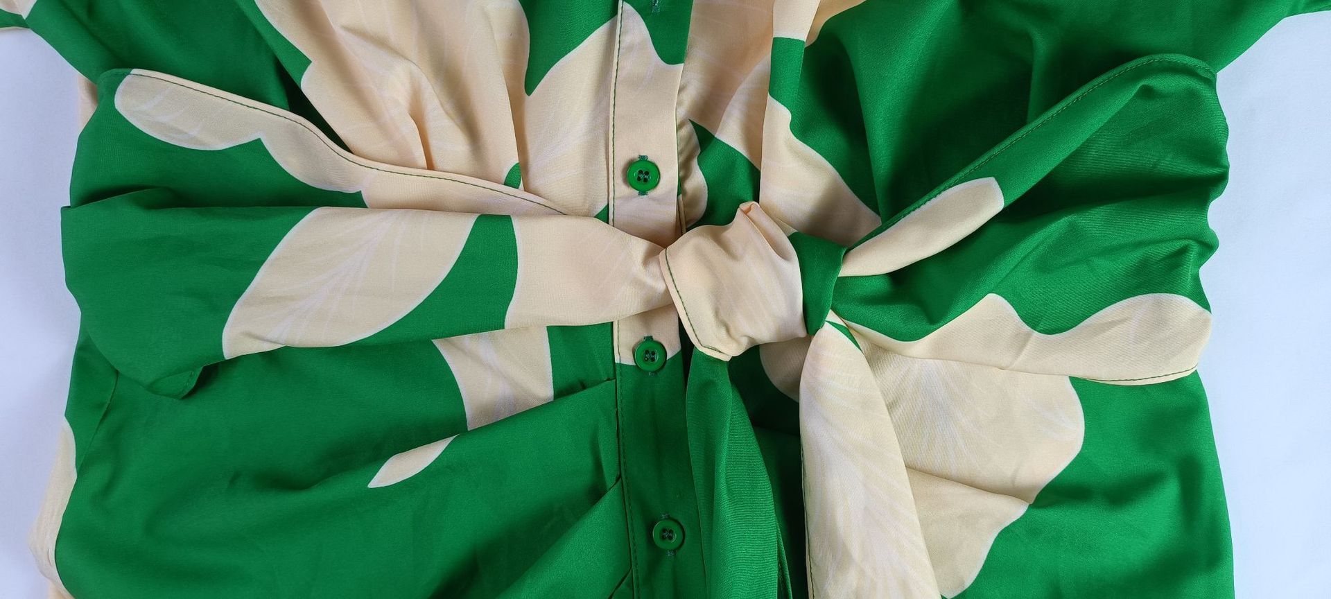 Offrez-vous une allure chic et moderne avec cette robe chemise longue imprimée, parfaite pour les journées ensoleillées comme pour les occasions spéciales. Son imprimé artistique vert et beige attire le regard tout en restant élégant, tandis que sa coupe fluide assure confort et féminité. La ceinture assortie permet d’ajuster la taille et de mettre en valeur la silhouette avec un joli effet drapé.